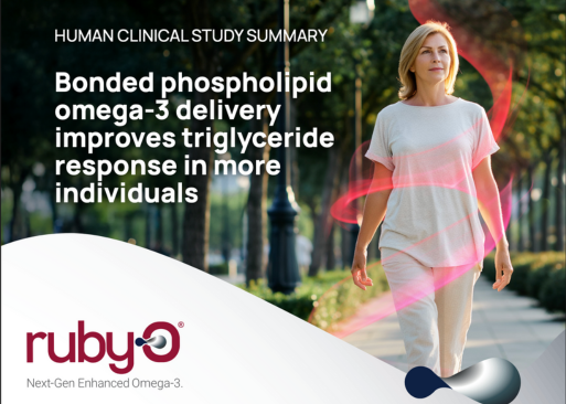 Human clinical evidence from a randomized, double-blind study evaluating Ruby-O®, a patented bonded phospholipid omega-3 platform, demonstrating stronger triglyceride responder outcomes and superior omega-3 incorporation efficiency at a lower EPA+DHA dose